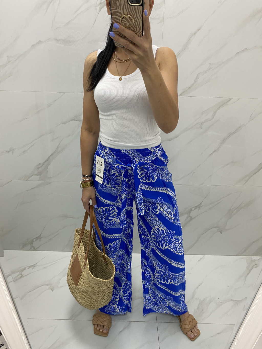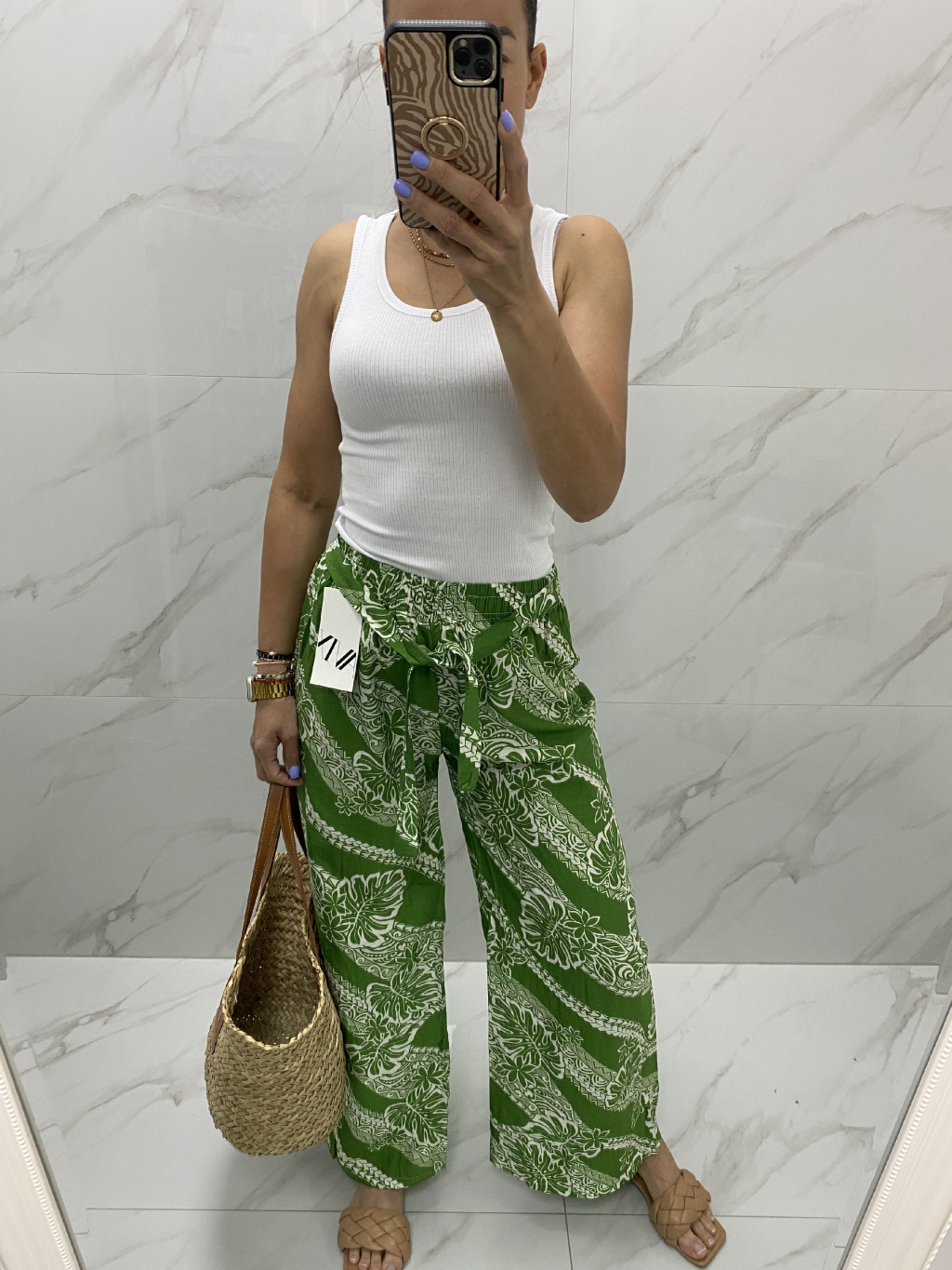 Barvy: Královsky modrá / Smaragdová / Jarní zelená / Béžová / Černobílá / Bílomodrá / Černá s béžovou lehoučká, splývavá a příjemná na tělo Popis: Volnočasové kalhoty Island Breeze tě vezmou rovnou na pláž – i kdyby jen do města.